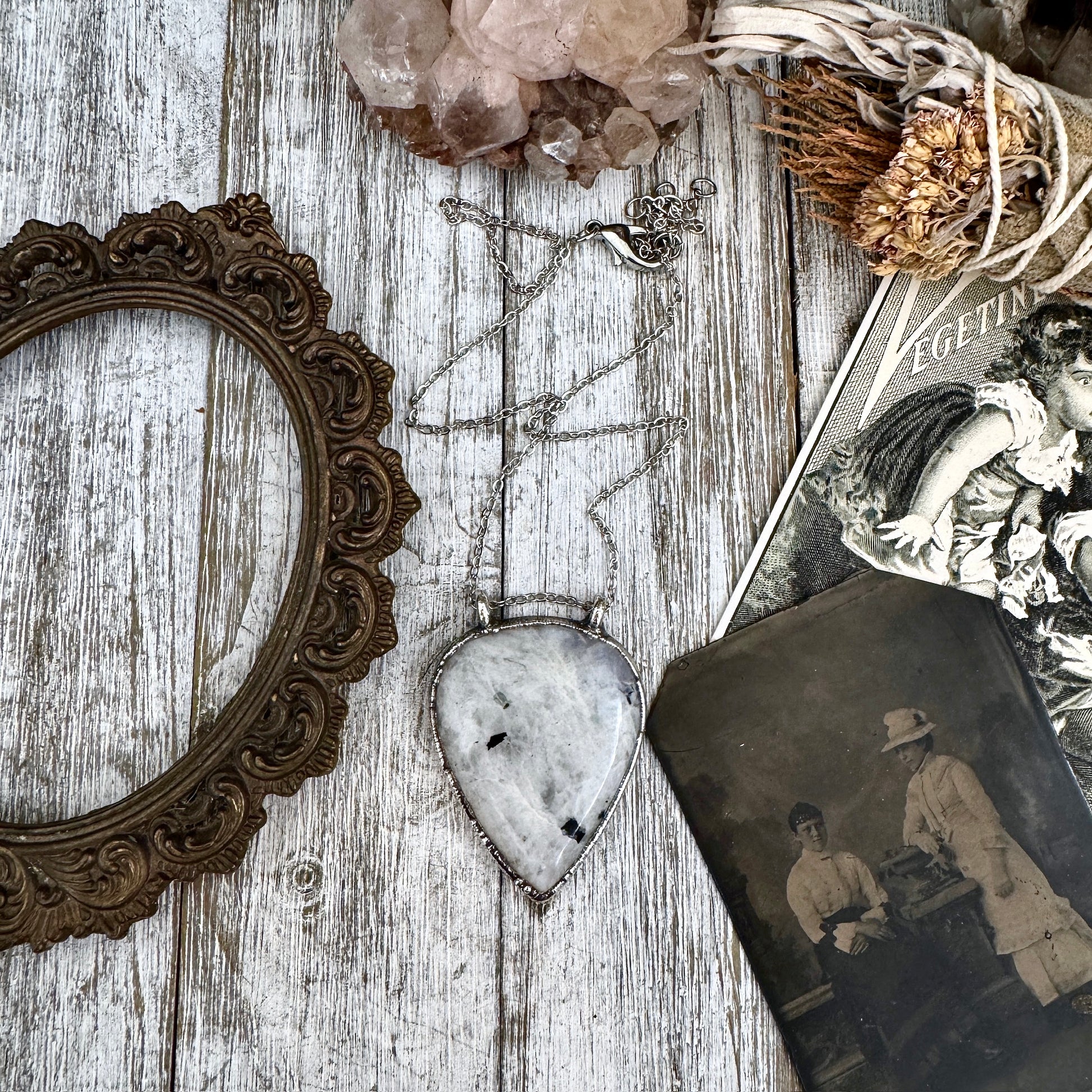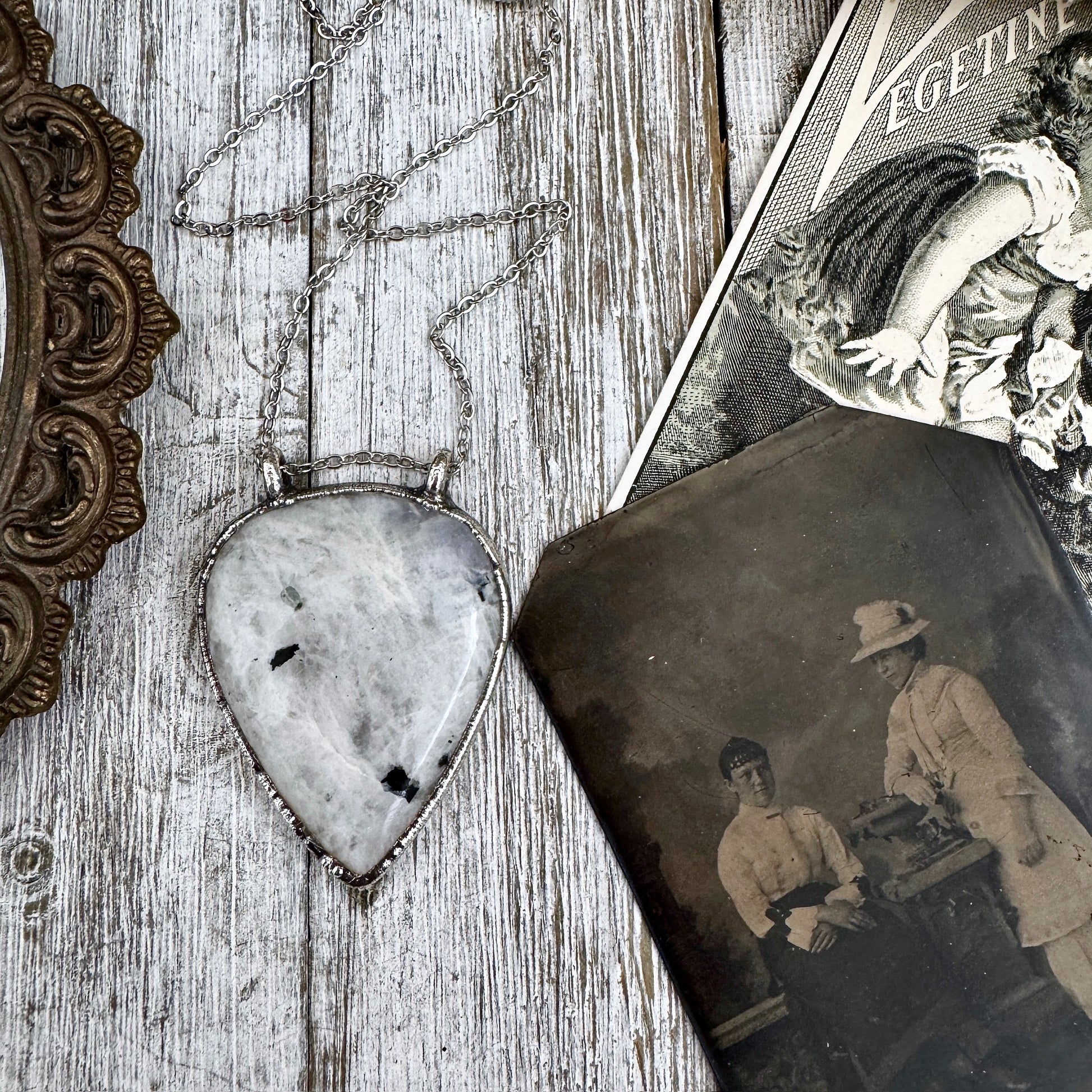 Big Rainbow Moonstone with Black Tourmaline Necklace in Fine Silver / Foxlark Collection - One of a Kind