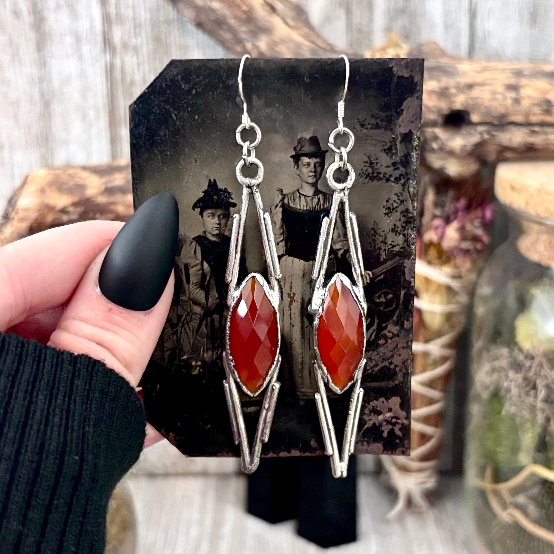 Carnelian Fine Silver Crystal Dangle Earrings / Long Dangle Witchy Earrings