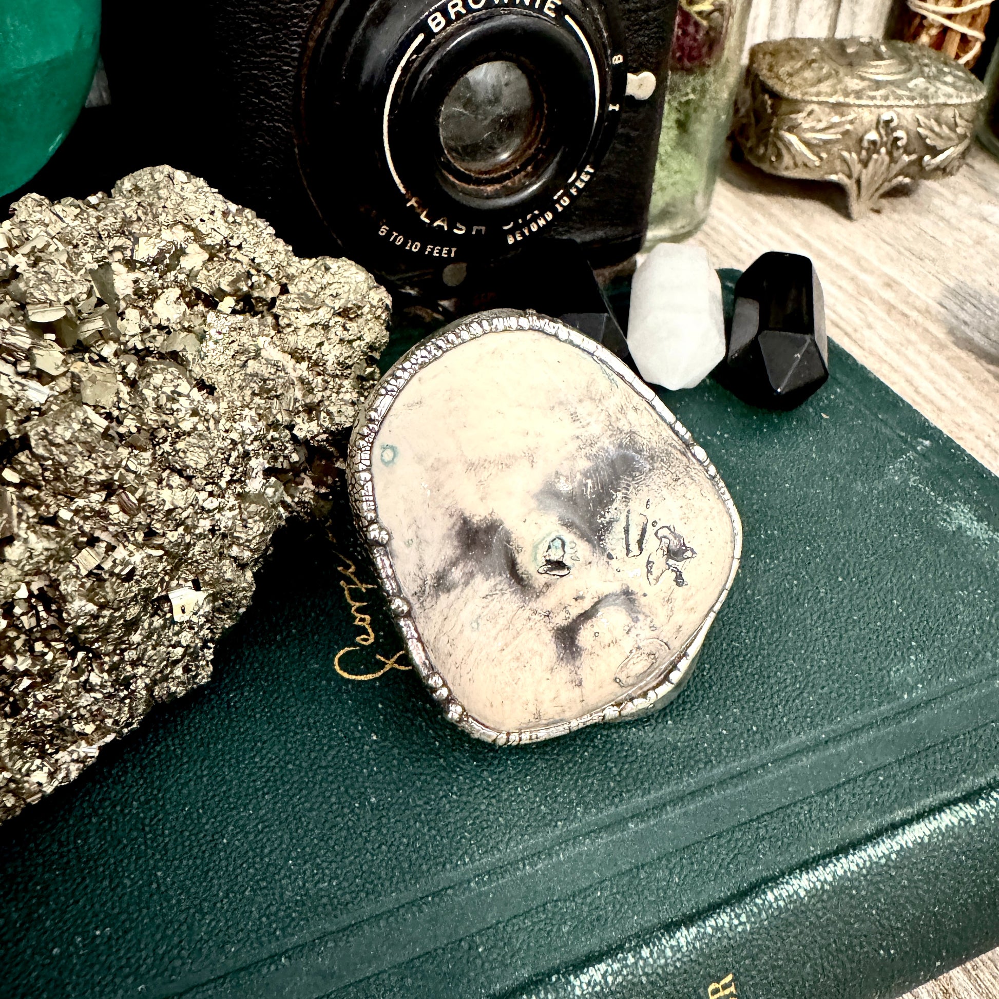 Get in touch with our contact page or you can always contact us on our FOXLARK Instagram www.instagram.com/foxlark or Facebook pages www.Facebook.com/foxlark , or through email foxlarkalchemy@gmail.comCeramic baby doll face set in fine silver and given a vintage patina turning it into a unique statement ring. This handmade ring is perfect worn alone or layered with other pieces.