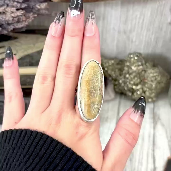 Fossilized Coral Crystal Ring Fine Silver Size 10 / Foxlark Collection - One of a Kind