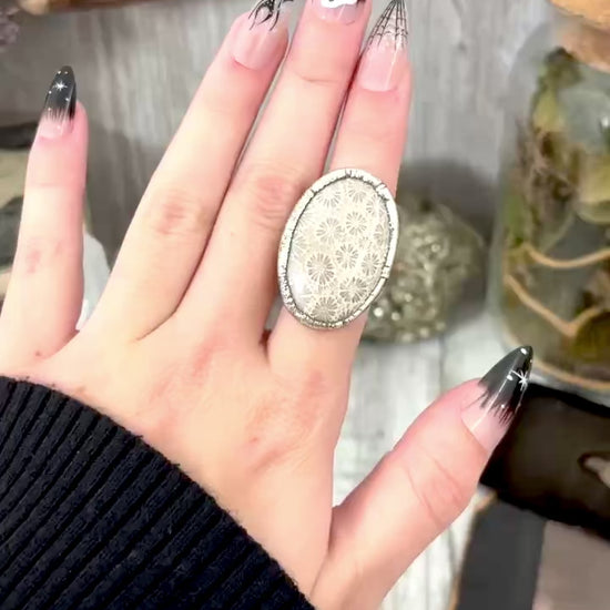 Fossilized Coral Crystal Ring Fine Silver Size 6.5 / Foxlark Collection - One of a Kind