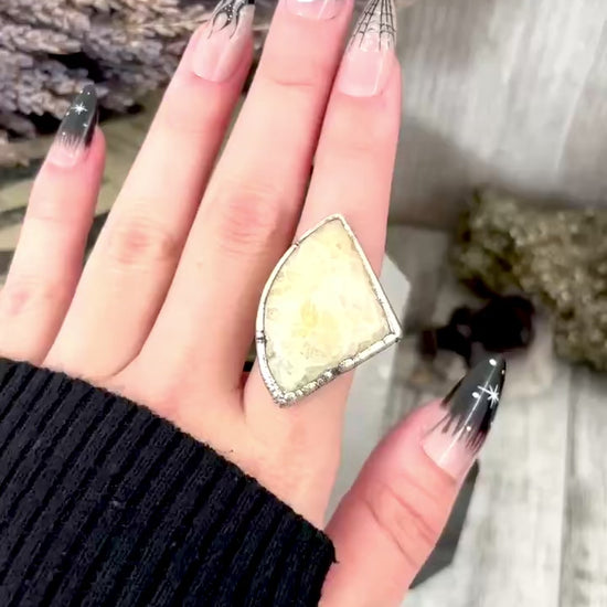 Fossilized Coral Crystal Ring Fine Silver Size 8.5 / Foxlark Collection - One of a Kind