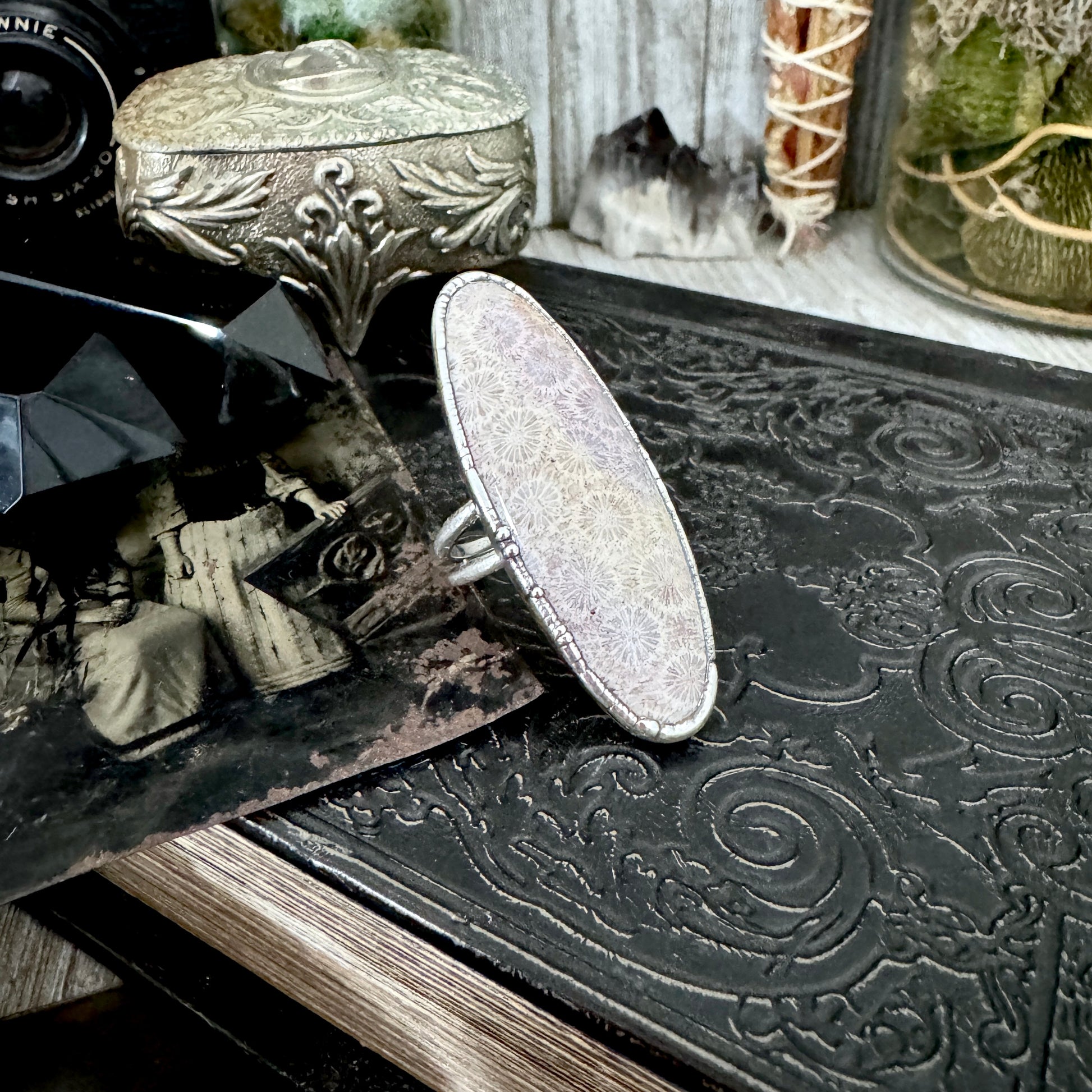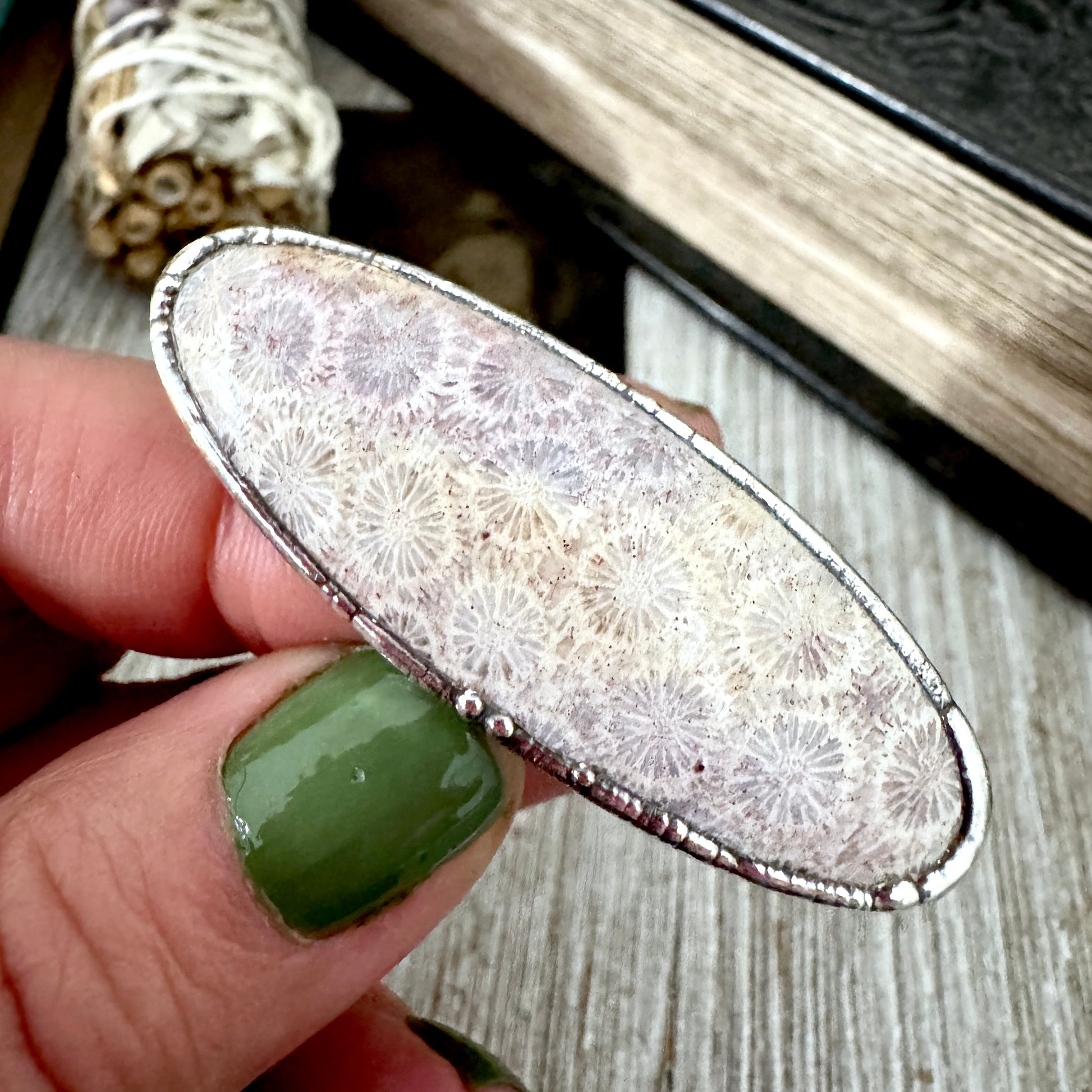 Fossilized Coral Crystal Ring Fine Silver Size 8.5 / Foxlark Collection - One of a Kind