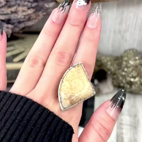 Fossilized Coral Crystal Ring Fine Silver Size 9 / Foxlark Collection - One of a Kind