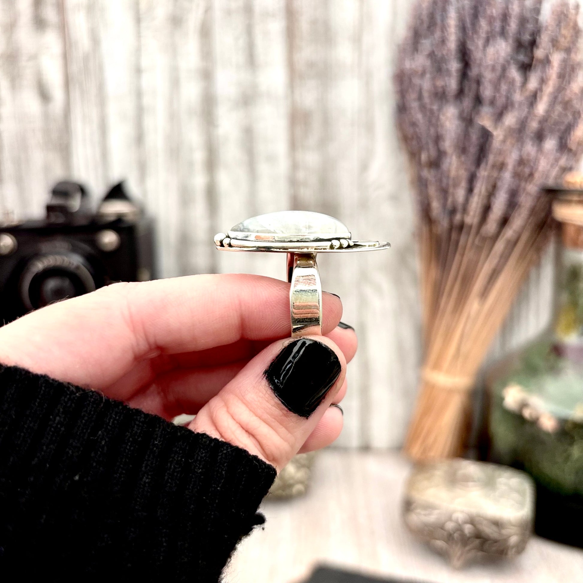Midnight Moon Rainbow Moonstone Crystal Ring in Sterling Silver- Designed by FOXLARK Collection Adjustable to Size 6 7 8 9