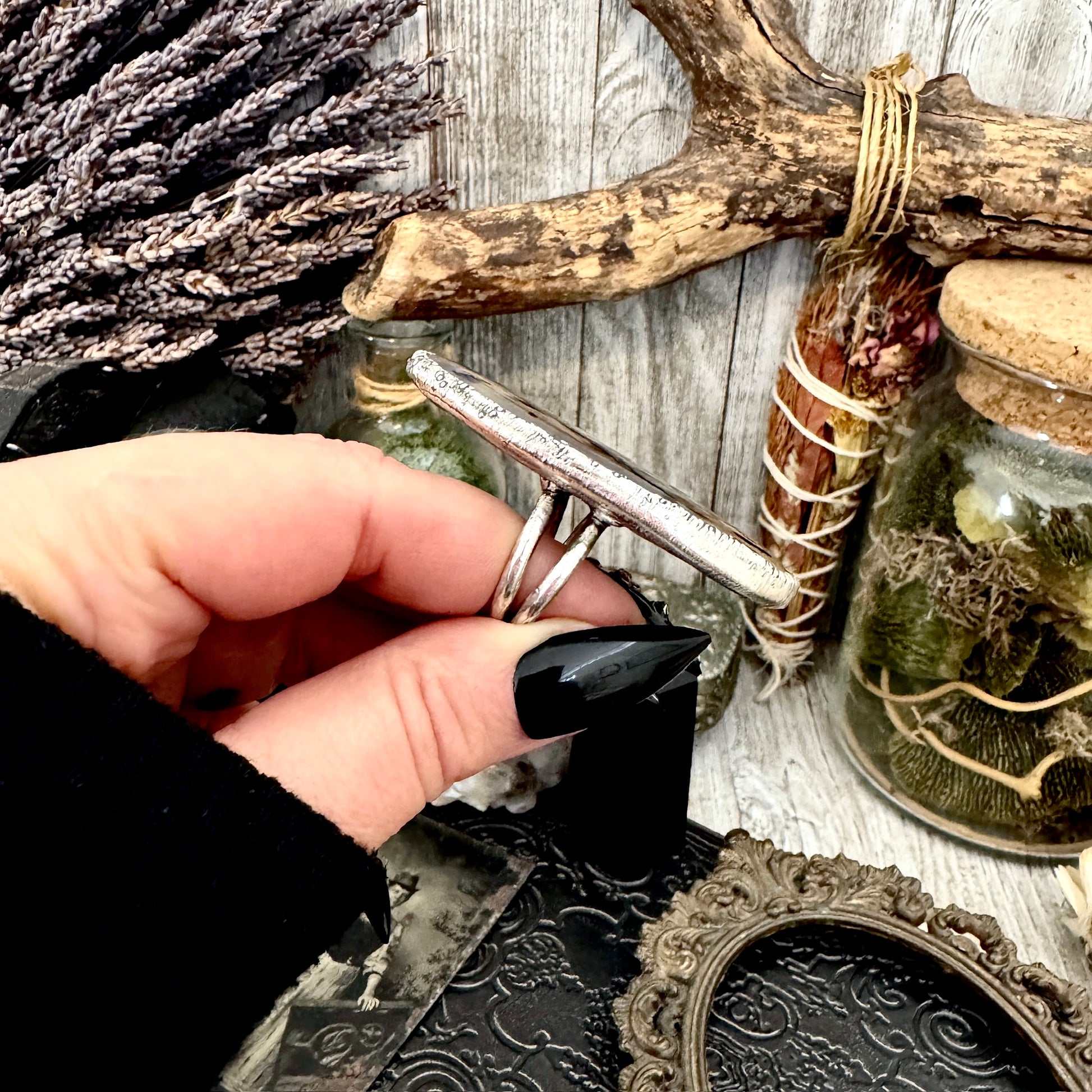 Get in touch with our contact page or you can always contact us on our FOXLARK Instagram www.instagram.com/foxlark or Facebook pages www.Facebook.com/foxlark , or through email foxlarkalchemy@gmail.comSlip a little magic onto your hand with this crystal fine silver ring. Sleek yet powerful, it radiates with energy, making it the perfect piece for anyone who loves a touch of power with their mysticism.