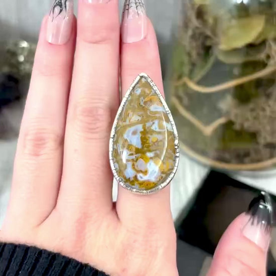 Petrified Wood Crystal Ring Fine Silver Size 7 / Foxlark Collection - One of a Kind