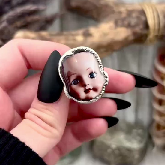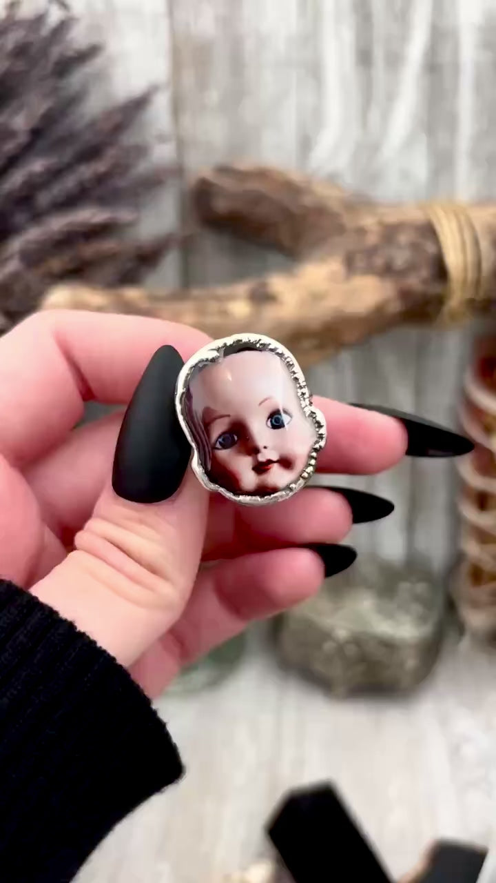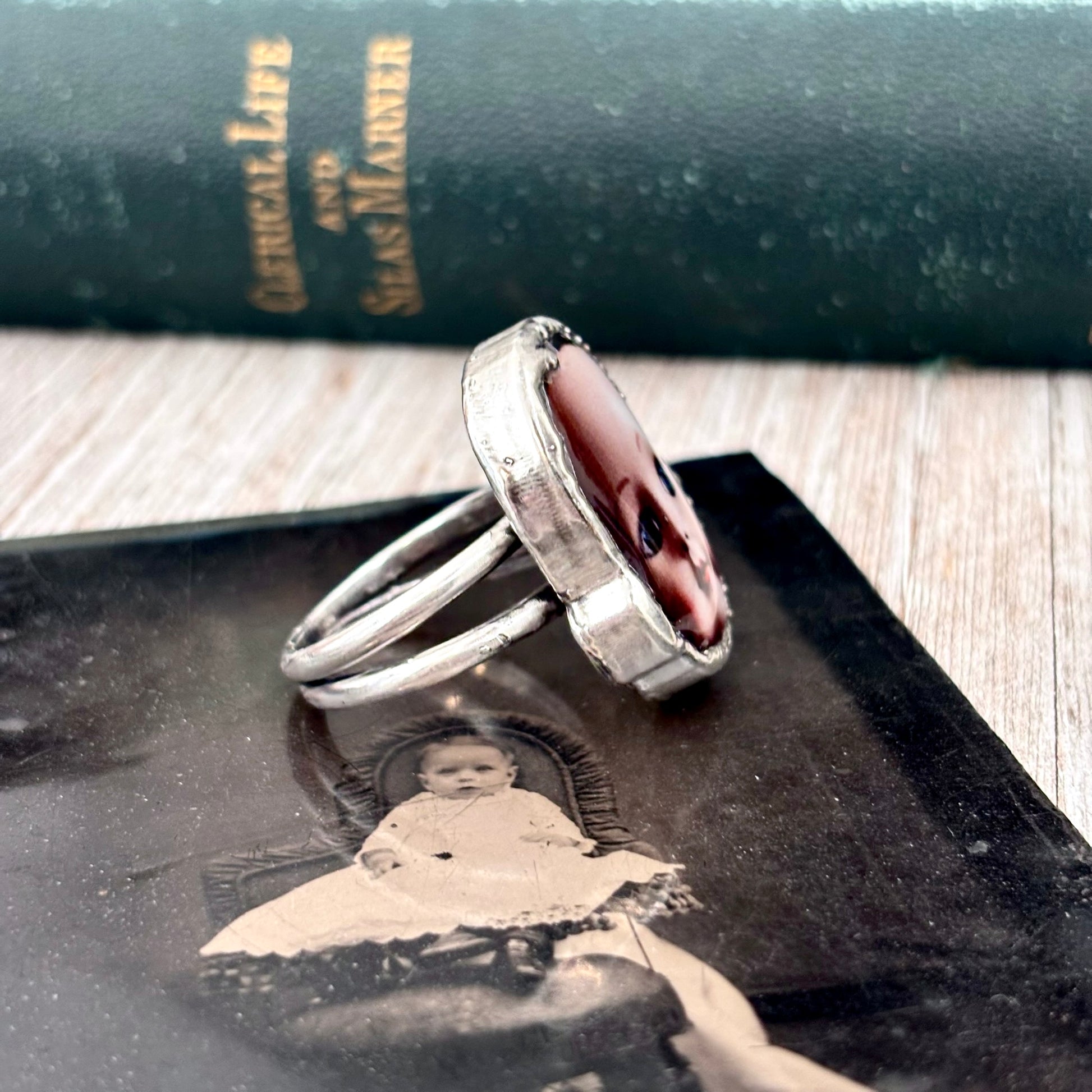 The Weirdlings - Printed Wooden Cabochon (resin sealed) Ring Fine Silver Size 9 / One of a Kind