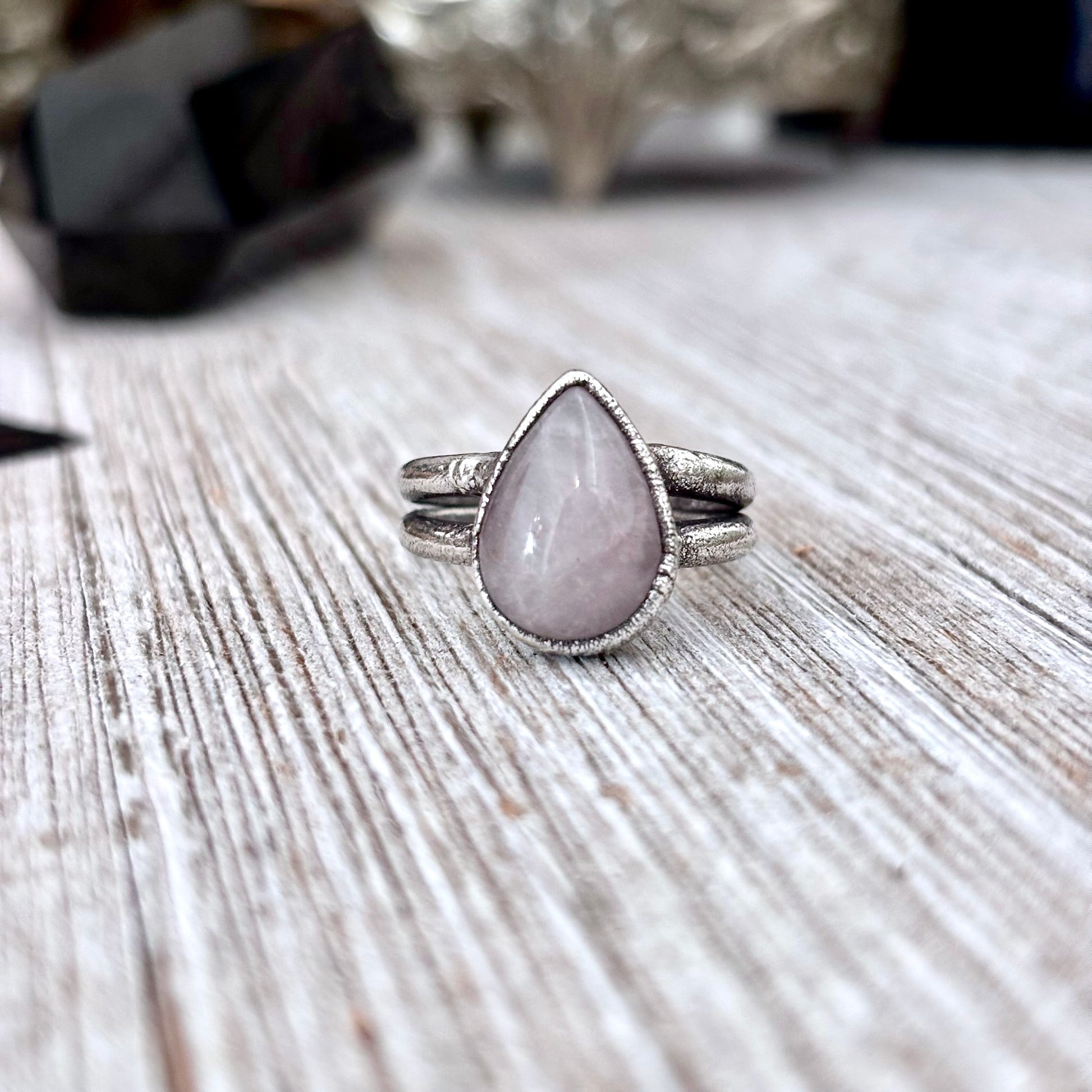 Get in touch with our contact page or you can always contact us on our FOXLARK Instagram www.instagram.com/foxlark or Facebook pages www.Facebook.com/foxlark , or through email foxlarkalchemy@gmail.comThis Rose Quartz ring, set in fine silver, radiates soft pink warmth and gentle energy. Known as the stone of love, Rose Quartz opens the heart, encourages self-compassion, and nurtures emotional healing. Tender, romantic, and effortlessly cool—perfect for those who move through the world with kindness and an open heart.