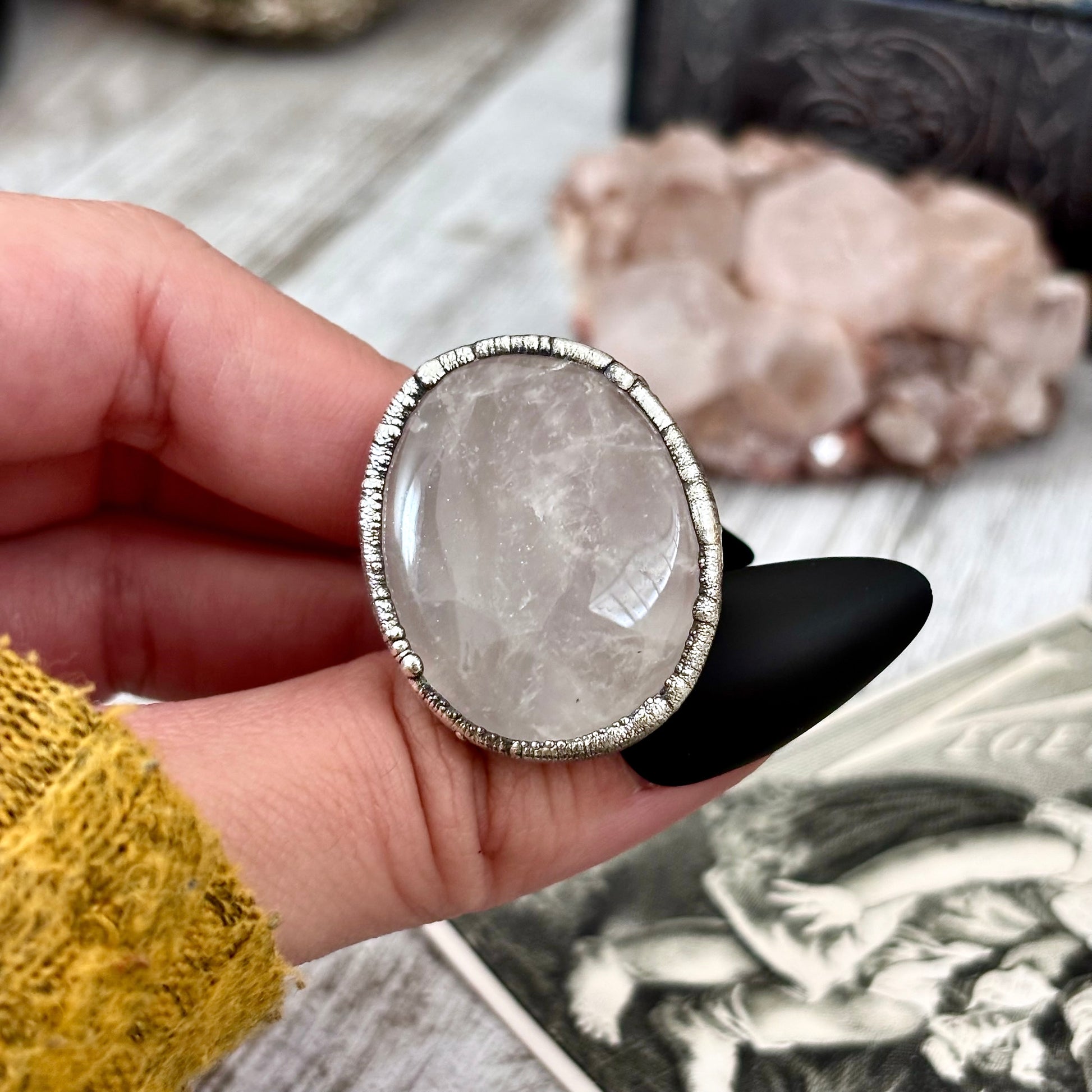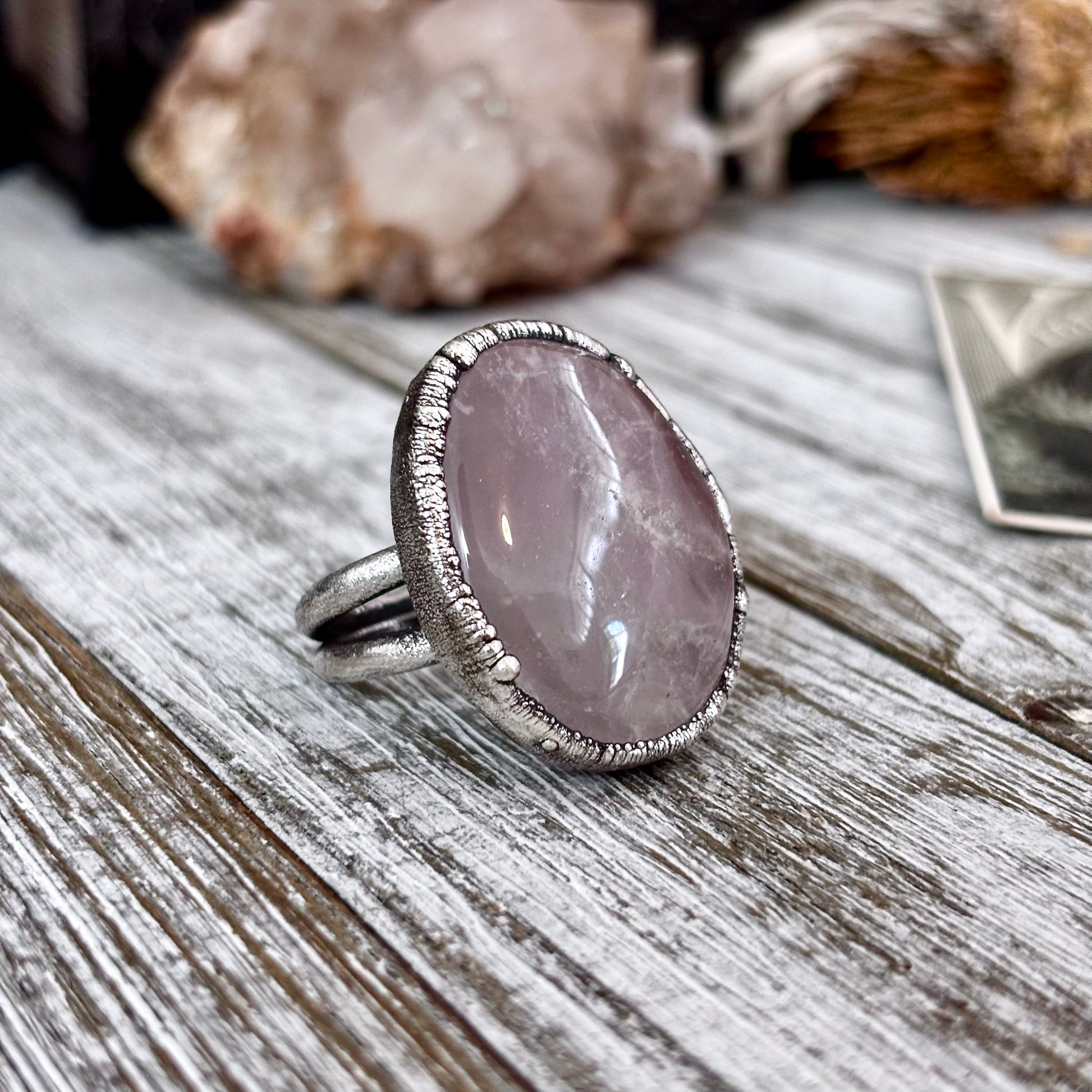 Rose Quartz Ring Silver Size 8.5 / Foxlark Collection - One of a Kind