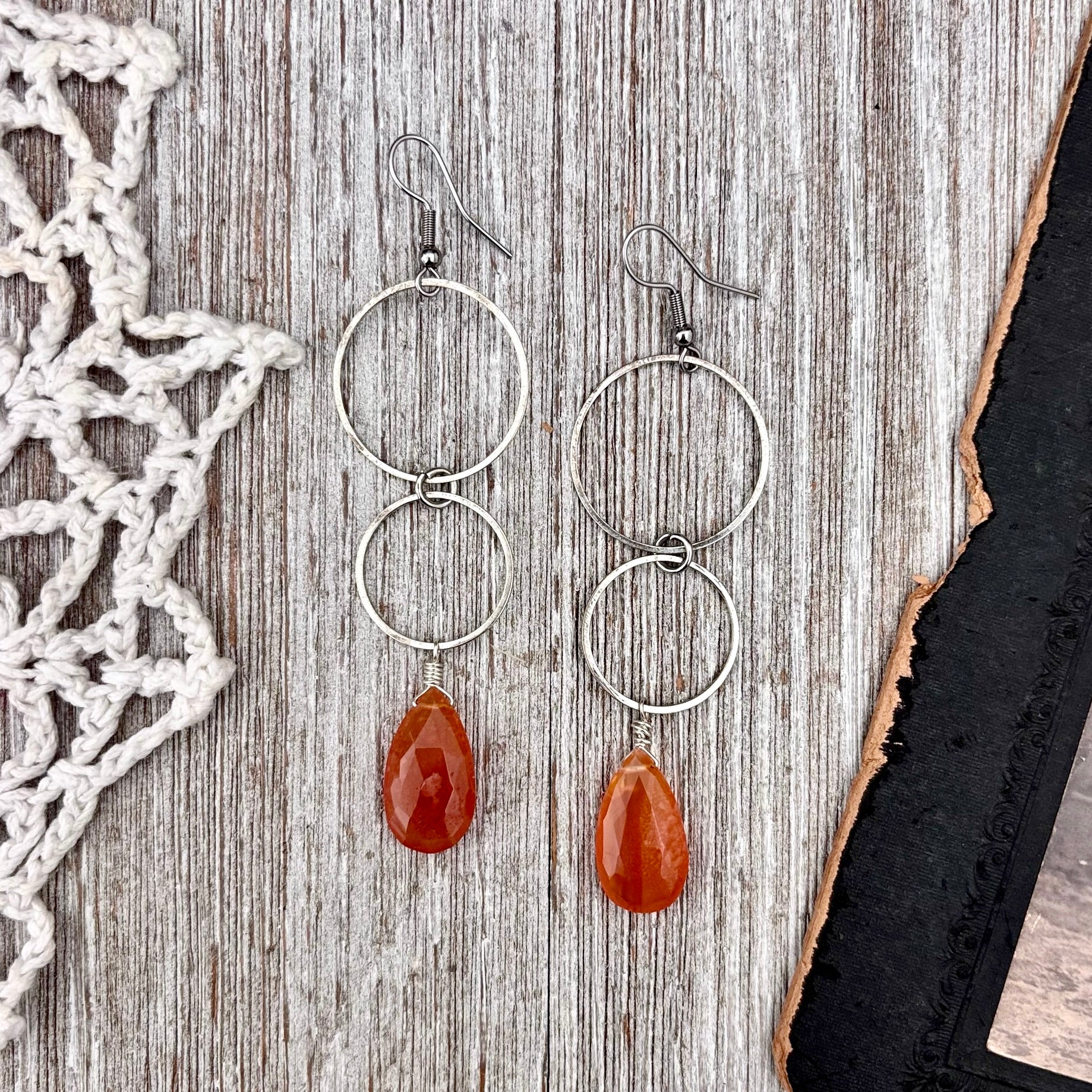 Stainless Steel Carnelian Hoop Earrings / Long Dangle Earrings