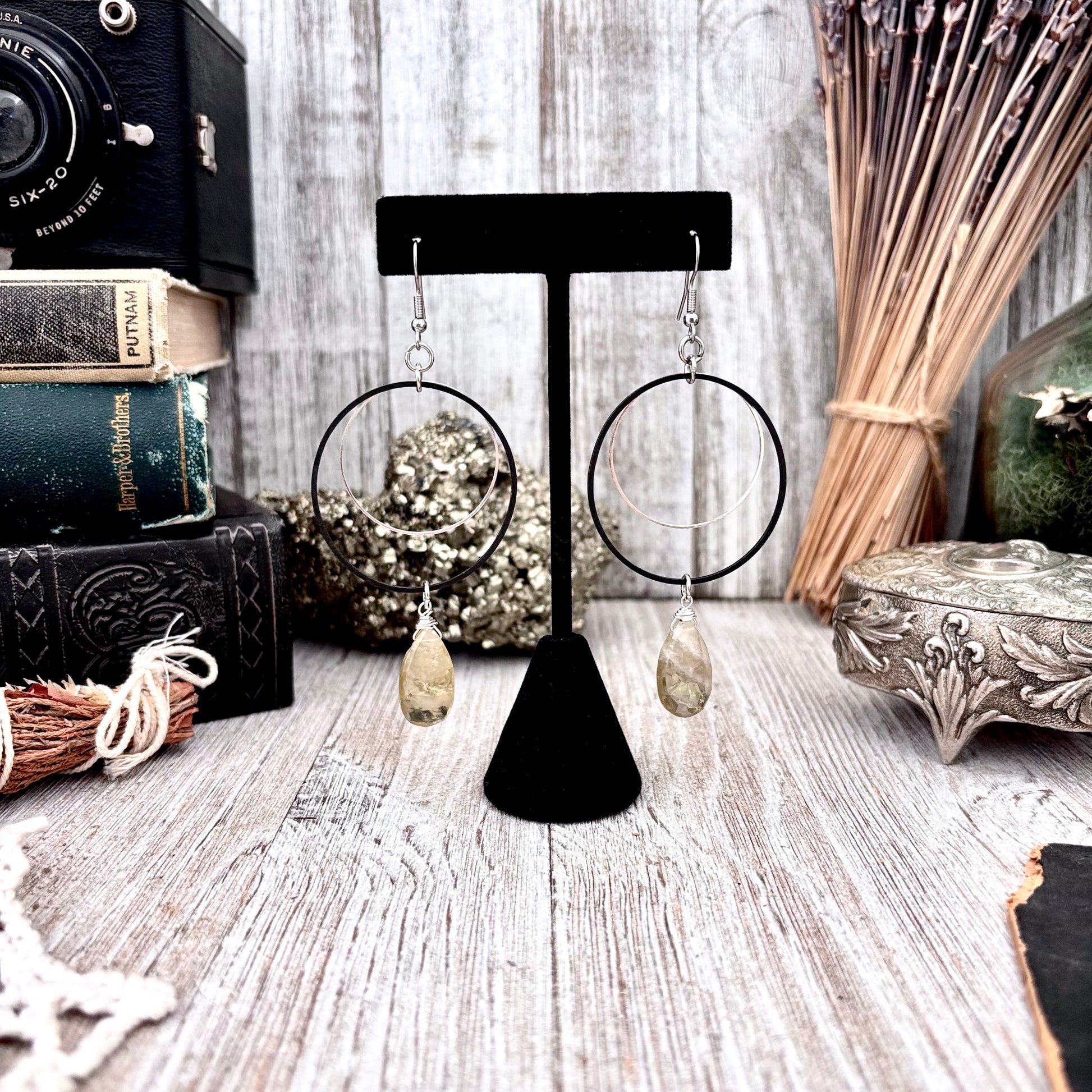 Stainless Steel Citrine Hoop Earrings / Long Dangle Earrings