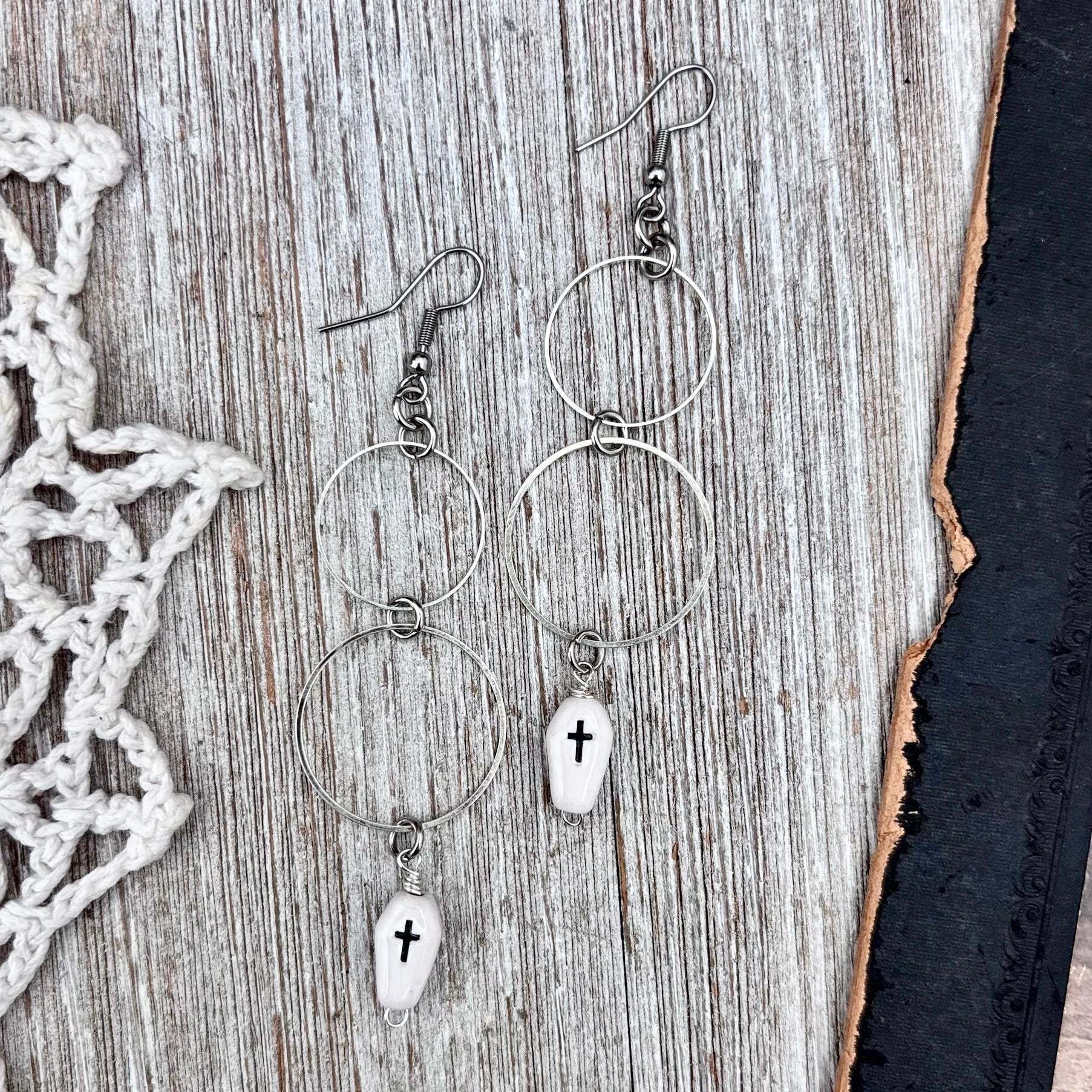 Stainless Steel Coffin Hoop Earrings / Long Dangle Earrings