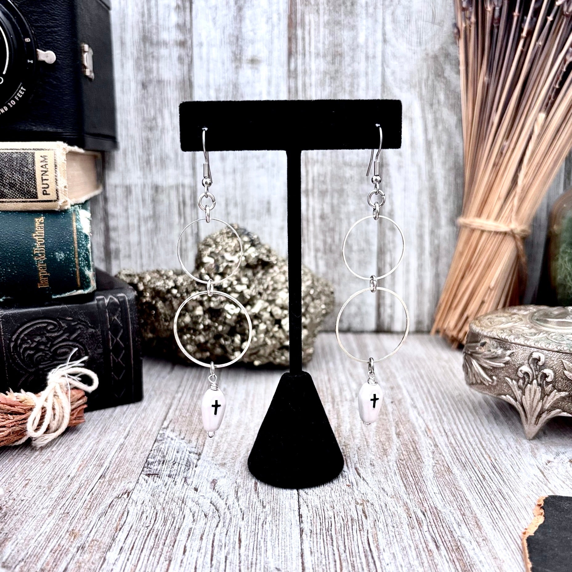 Get in touch with our contact page or you can always contact us on our FOXLARK Instagram www.instagram.com/foxlark or Facebook pages www.Facebook.com/foxlark , or through email foxlarkalchemy@gmail.comAdd some bold movement to your look with these stainless steel dangle hoop earrings. Sleek, eye-catching, and effortlessly cool, they bring just the right amount of edge and elegance to any outfit.