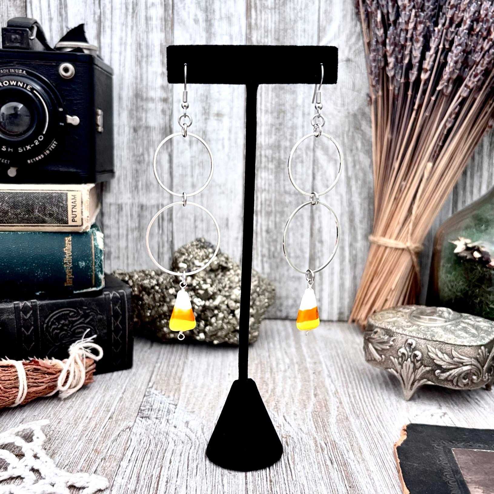 Stainless Steel Candy Corn Hoop Earrings / Long Dangle Earrings