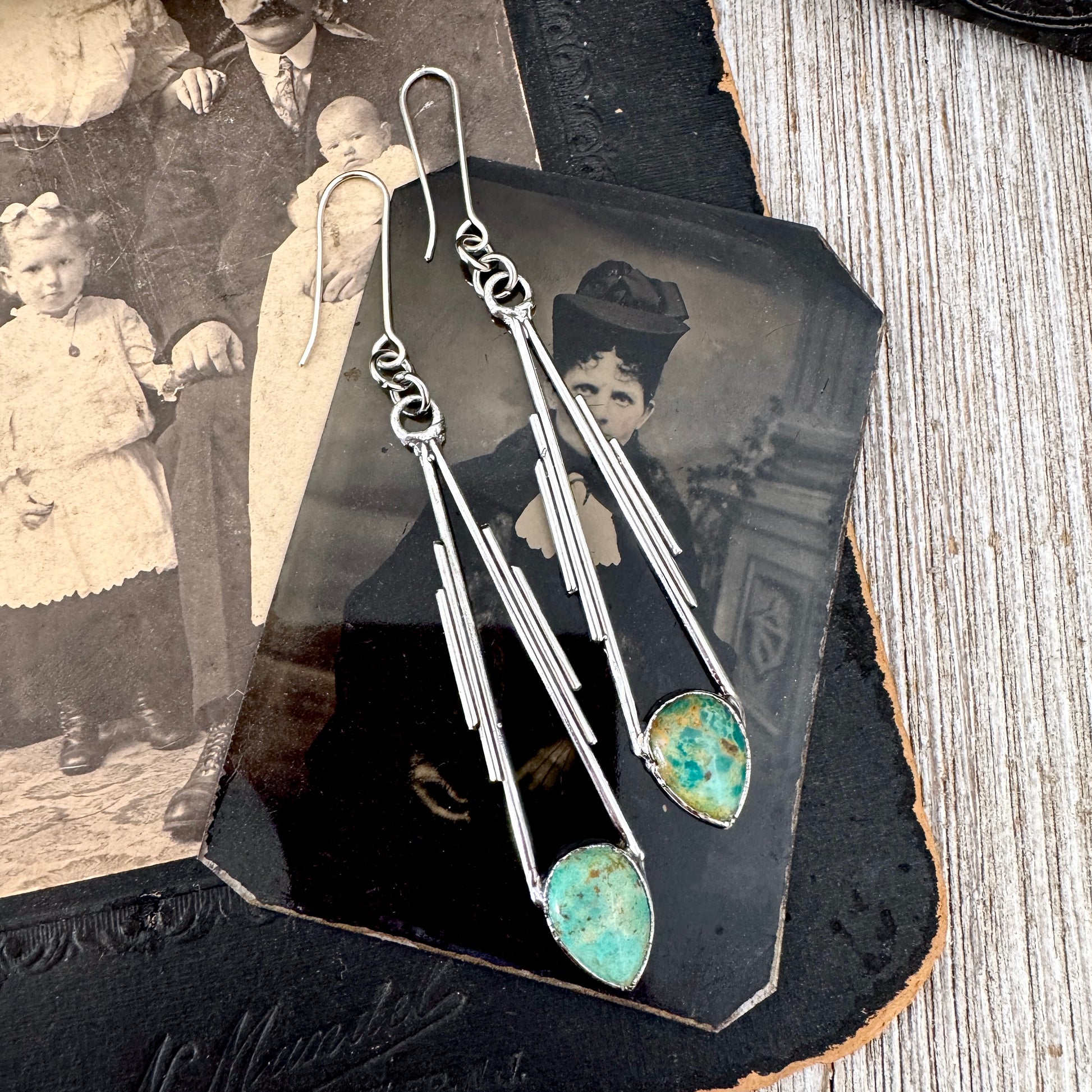 Turn up the edge with these fine silver Tibetan turquoise dramatic drop earrings. Long, lightweight, and built to move, they catch the light every time you turn your head. Just the right hit of shine for anyone who likes their jewelry a little bold.