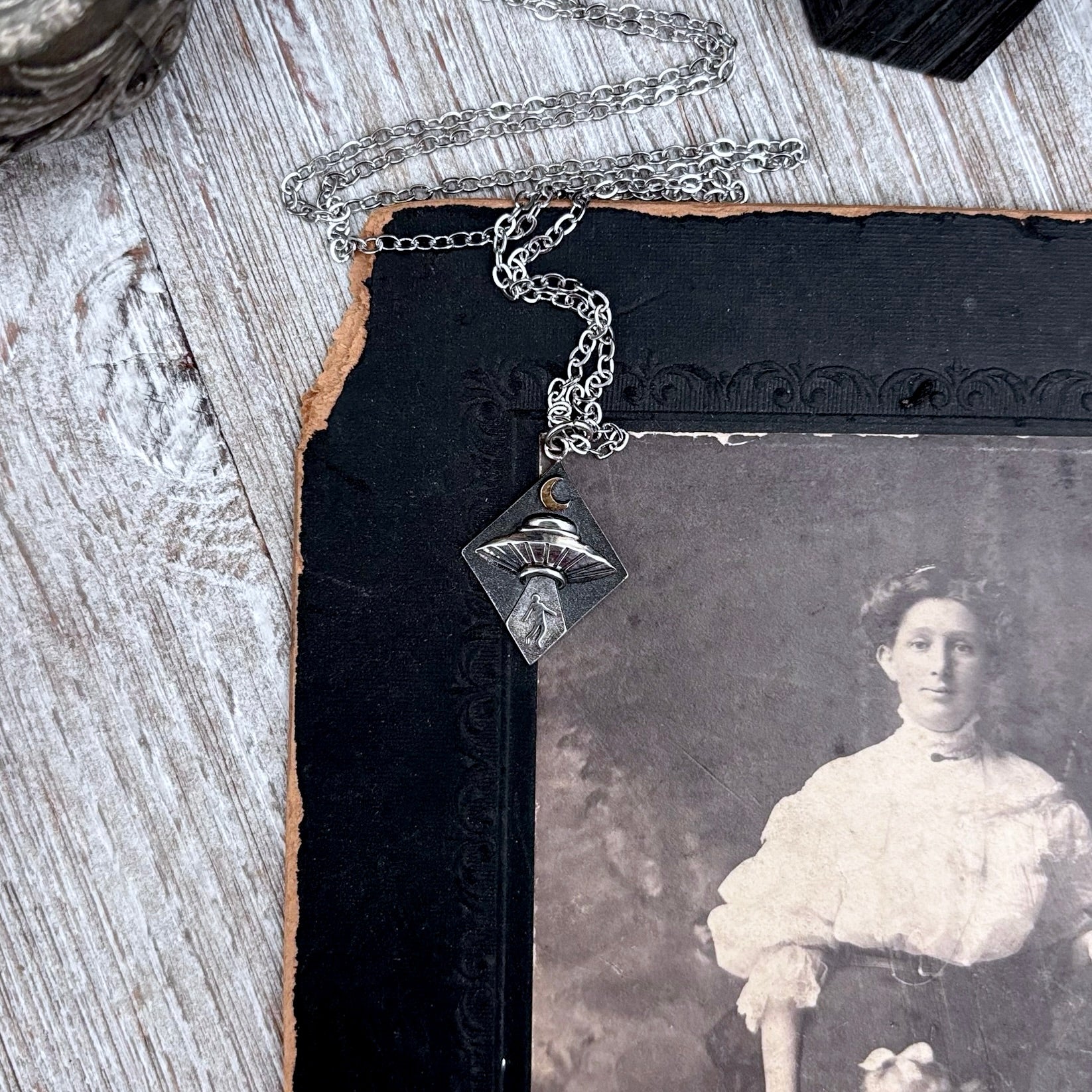 Tiny Talisman Collection - Sterling Silver UFO abduction Necklace Pendant / Curated by FOXLARK Collection
