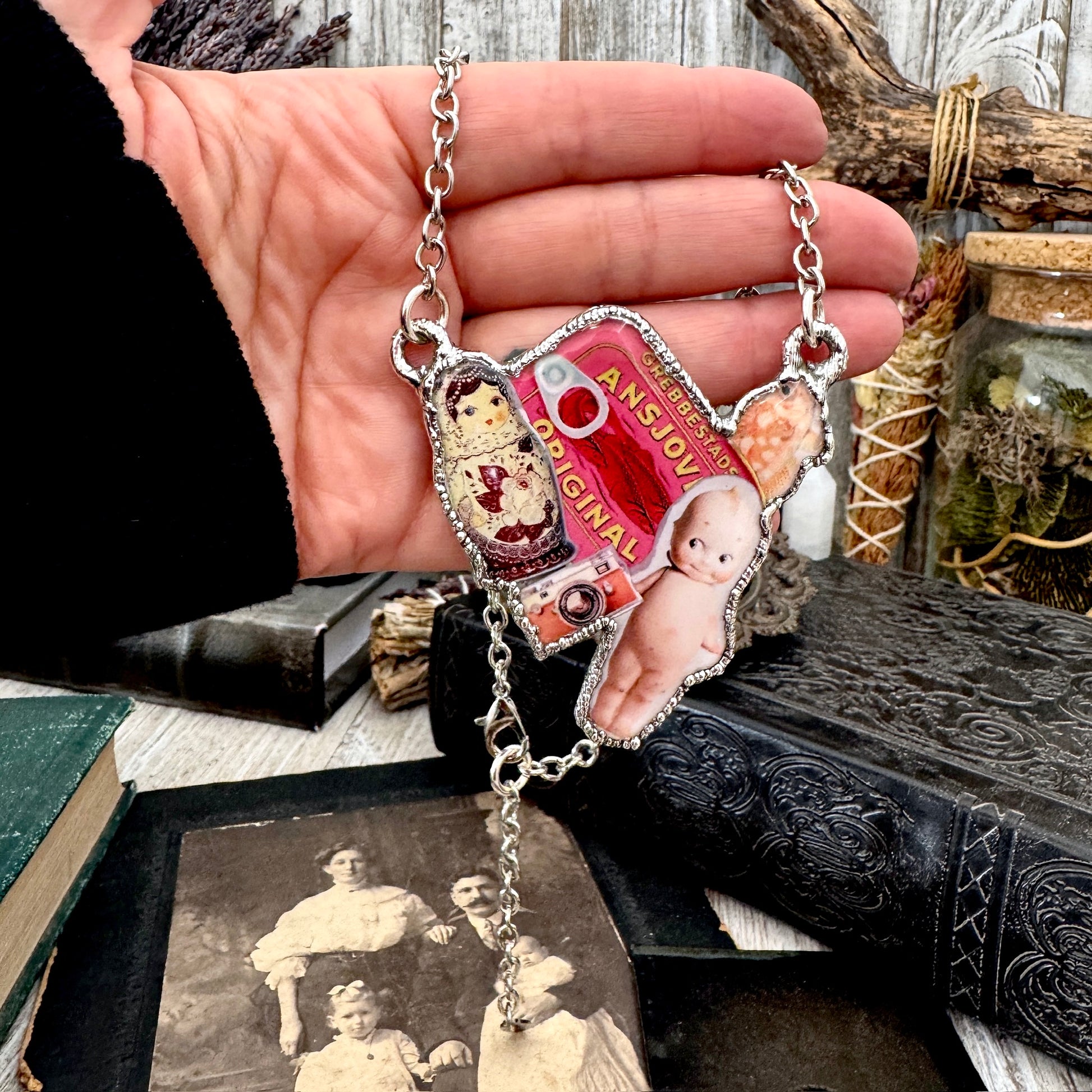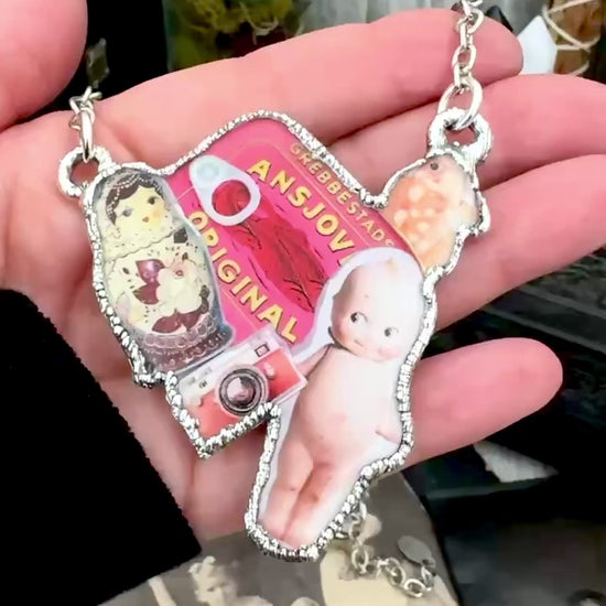 Vintage Collage Necklace (Kewpie Doll, Camera, Nesting Doll, etc.) - Fine Silver Necklace The Paper Project Collection / One of a Kind