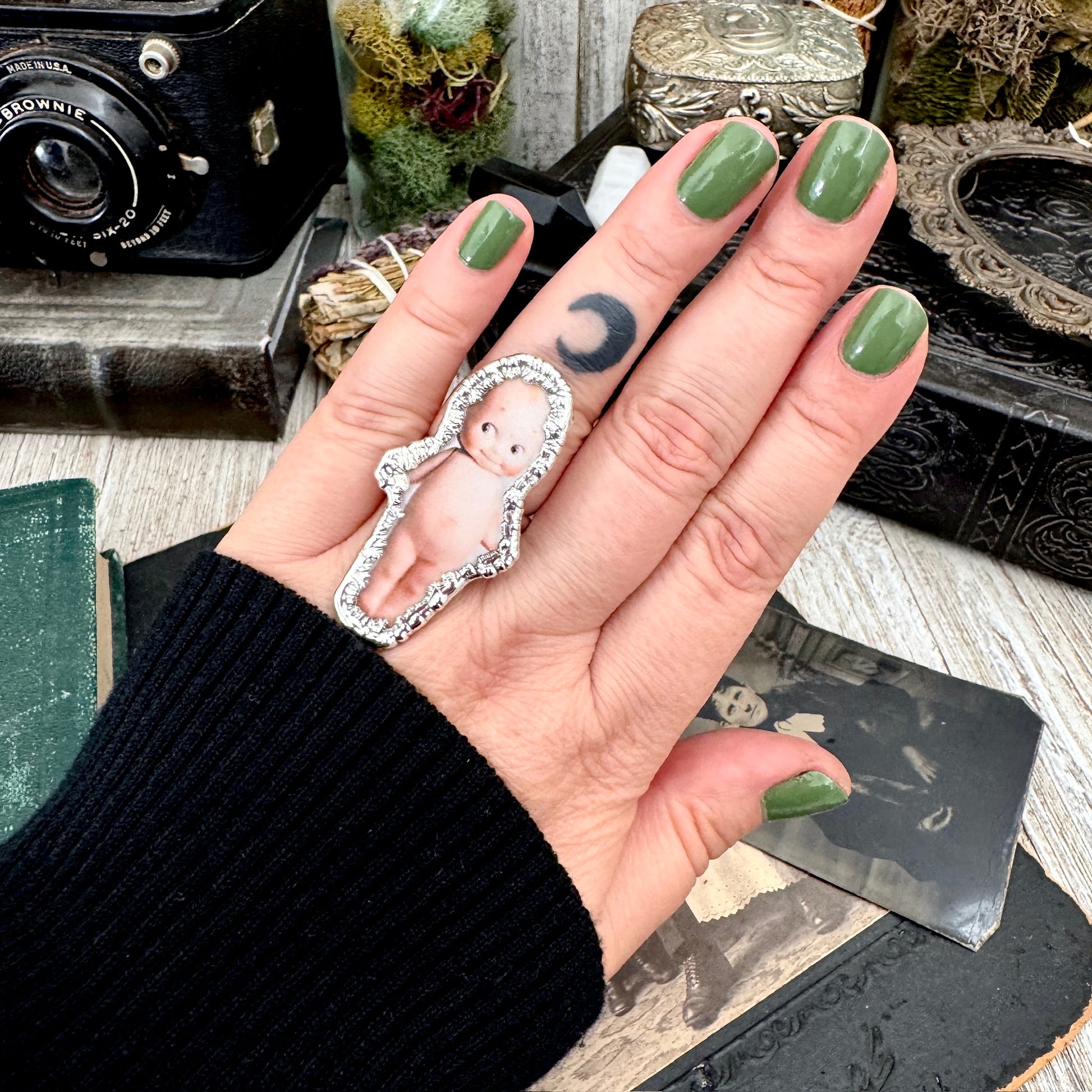 Vintage Kewpie Doll- Fine Silver Ring Size 8 The Paper Projects Collection / One of a Kind